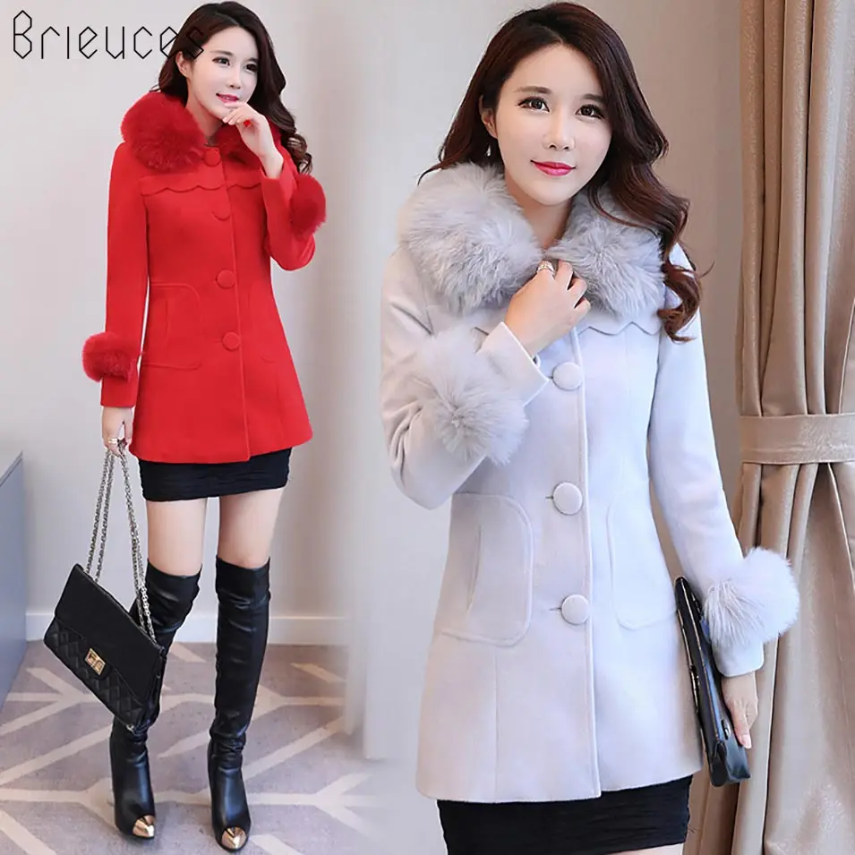 .Images for Brieuces 2017 Winter Woolen Coat For Women Fashion Solid Single Breasted Overcoat Fur Collar Slim Outerwear Female Trench Jacket