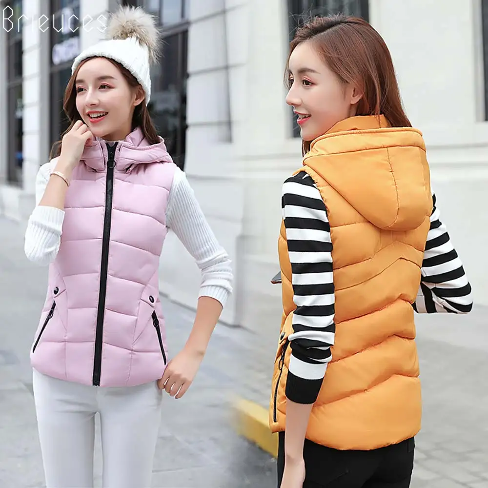 .Pictures of Brieuces 2018 New Autumn Winter Vest Women Sleeveless Vest Jacket Warm Short Cotton Hooded Winter Coat Waistcoat Tops Female