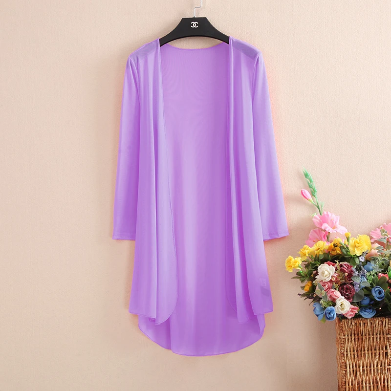 .Pictures for 2020 New Korean Feamle Medium Long Shawl Coat Fashion Lace Patchwork Hollow Chiffon Thin Open Stitch Summer Jacket Over size