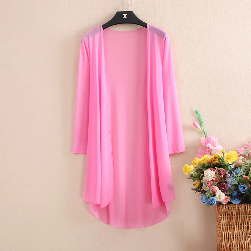 2020 New Korean Feamle Medium Long Shawl Coat Fashion Lace Patchwork Hollow Chiffon Thin Open Stitch Summer Jacket Over size